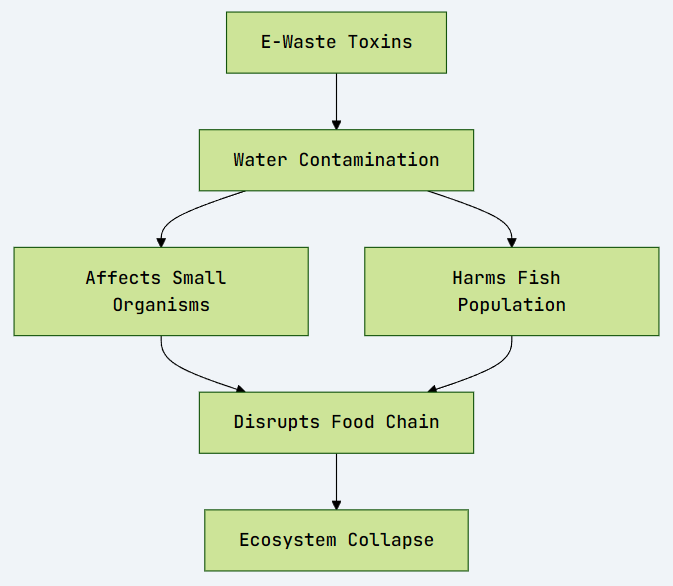 E-waste pollutants are deadly to aquatic organisms. Contaminants like heavy metals and persistent chemicals cause: