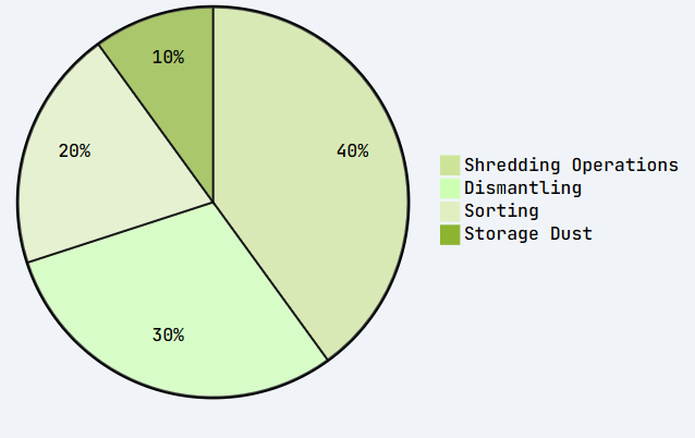 | Particulate Matter (PM) | Shredding and mechanical processing | Fine and ultrafine particles penetrate deep into the lungs and bloodstream, causing cardiovascular and respiratory diseases |